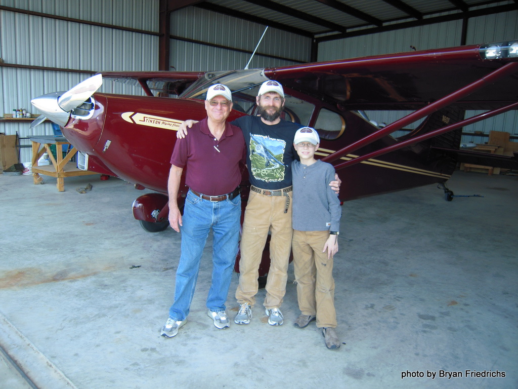 Three Generations of Nickisch Pilots just returned with the newest addition to the Coyote Air fleet. Dirk, Willard and Bremner flew the Stinson 108 from Texas to Alaska. She is a beauty and very retro with lovely wood paneled interior.